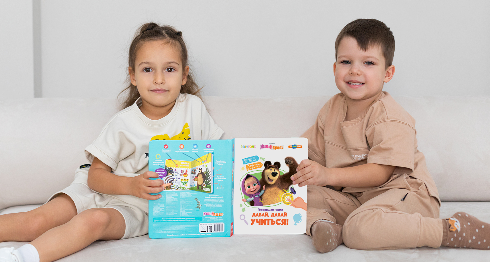 Лицензионный продукт от BertToys и Агама Медиа. Маша и Медведь - персонажи любимого мультика оживают на страницах книги, просто нажимай пальчиком!