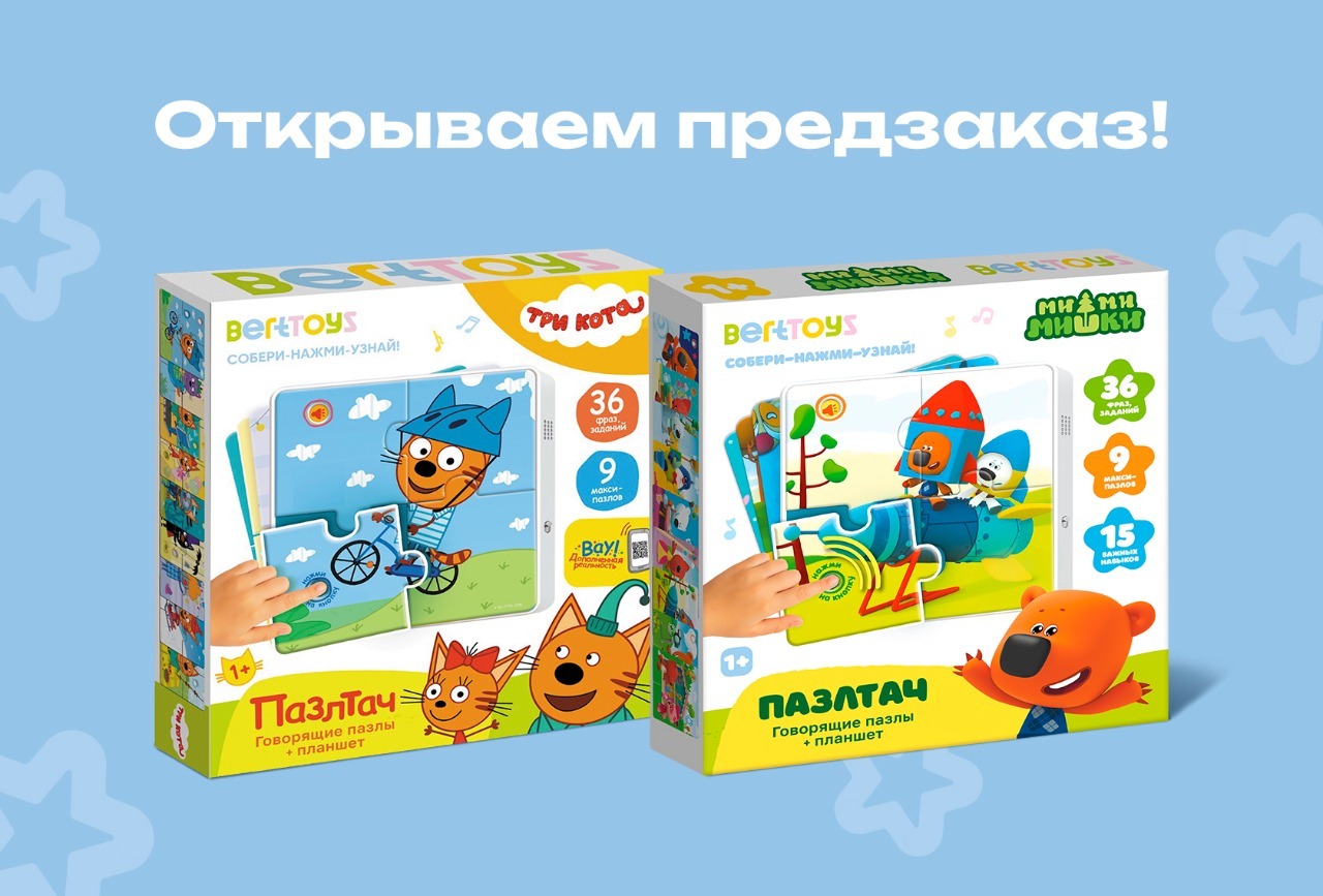 В январе поступят в продажу Пазлтач «Три кота» и «Ми-ми-мишки»: оформляйте заказ на сайте прямо сейчас, чтобы сэкономить 30%.