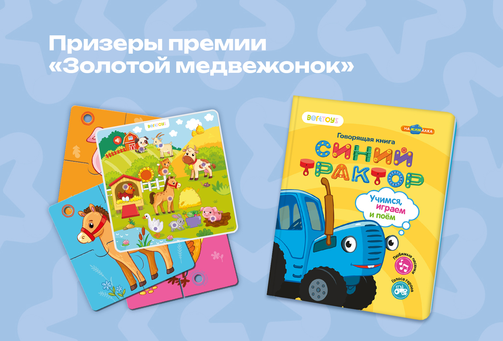 Призером премии в номинации «Лучшие игры и игрушки» стали говорящие пазлы «Пазлтач», идея которых полностью принадлежит отделу разработки бренда BertToys: игрушка не имеет аналогов на рынке. В номинации «Лучшая лицензионная продукция» была отмечена говорящая книга Нажималка, выпущенная в коллаборации с популярным российским мультфильмом «Синий трактор». Обе игрушки заняли III места в своих категориях.